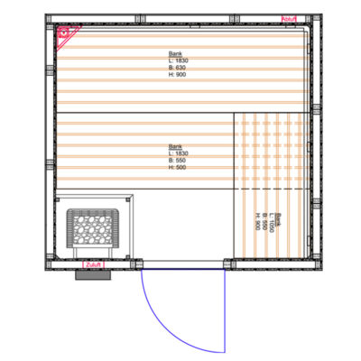 | Revêtement intérieur | Lambris de sauna SOFTLINE, Qualité A, fixations invisibles |